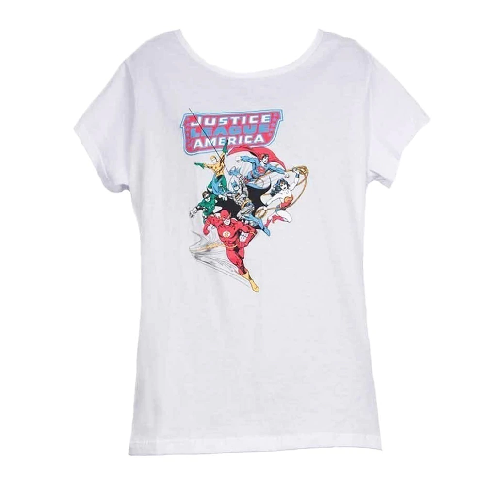 Remera blanca con diseño de Justice League of America. De dama. En 100% algodón calidad premium. Fresca y divertida. Agregala ya mismo a tu colección de remeras!