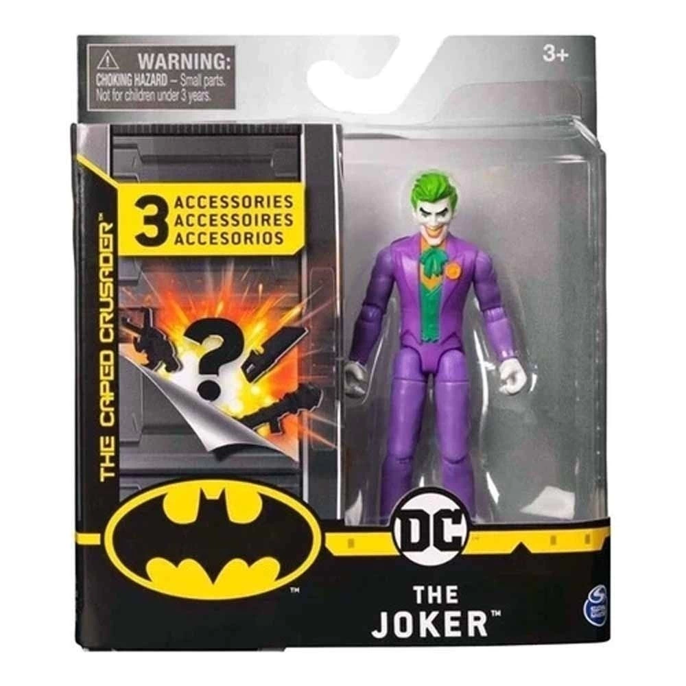 Figura articulada 10 cm coleccionable. Con 9 puntos de articulación. En esta oportunidad, traemos para ti a The Joker. Incluye 3 accesorios sorpresa. Edad recomendada desde 3 años.