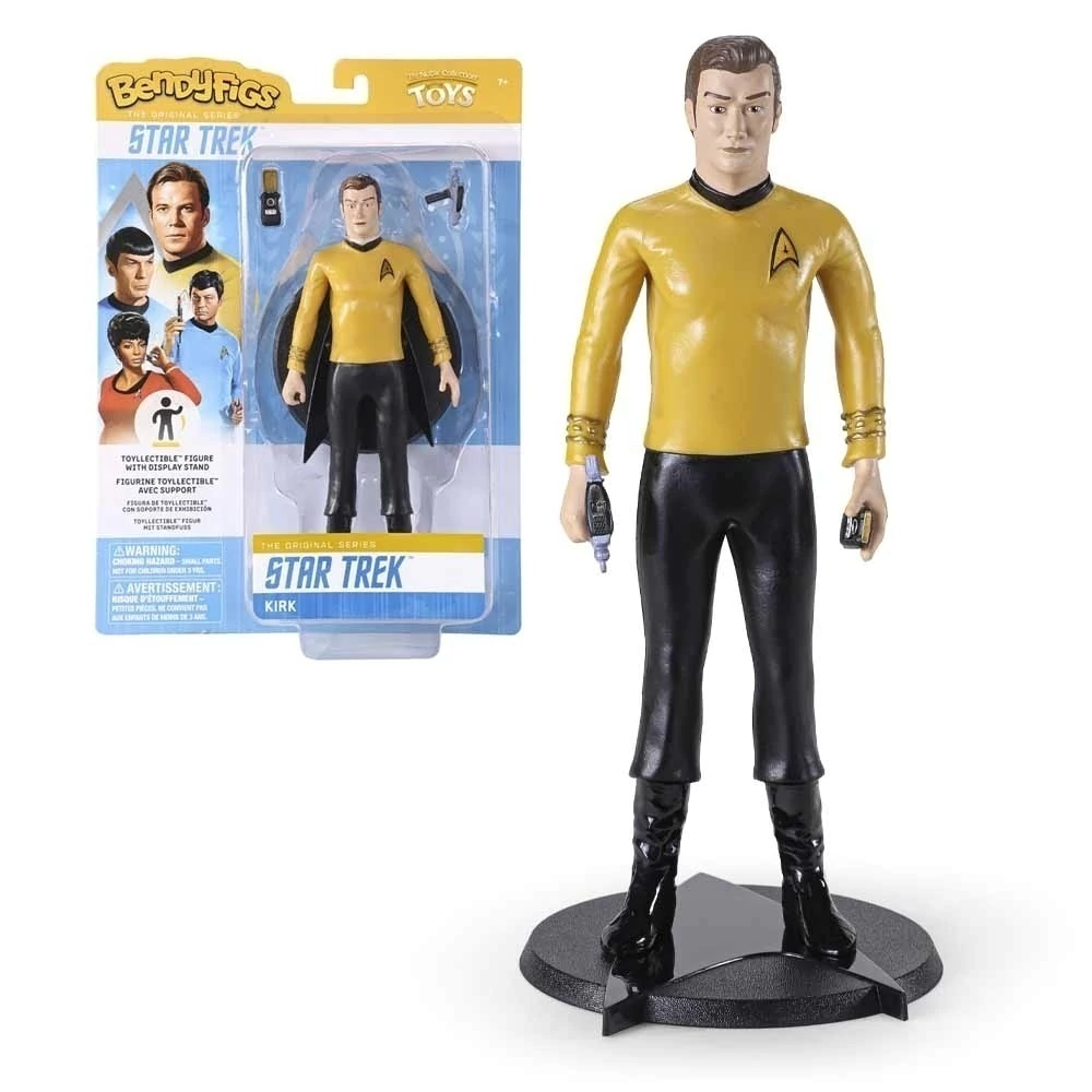 Figura Original Coleccionable Bendy Figs presentando a Kirk tal como se la puede apreciar en popular serie Star Trek. Mide 17 cm de alto aproximadamente. ¡No te la pierdas!